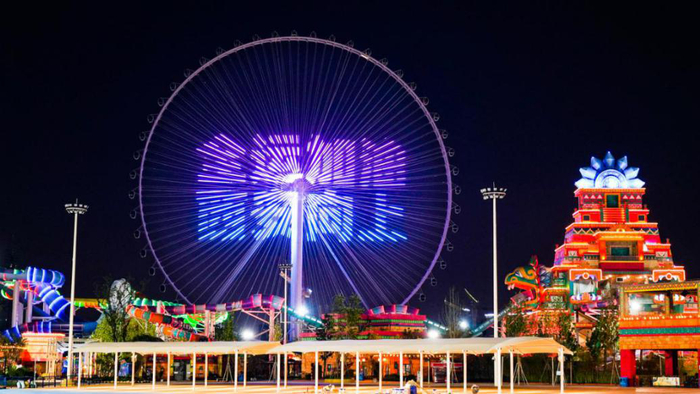 全运赛期,“全运晚8点”摩天轮系列光影秀分别上演了动感十足的开幕秀、 闭幕秀以及中秋特别版光影秀。平时,摩天轮变身为每日赛事热点大屏,上演全运夺金光影秀,为健儿打CALL。