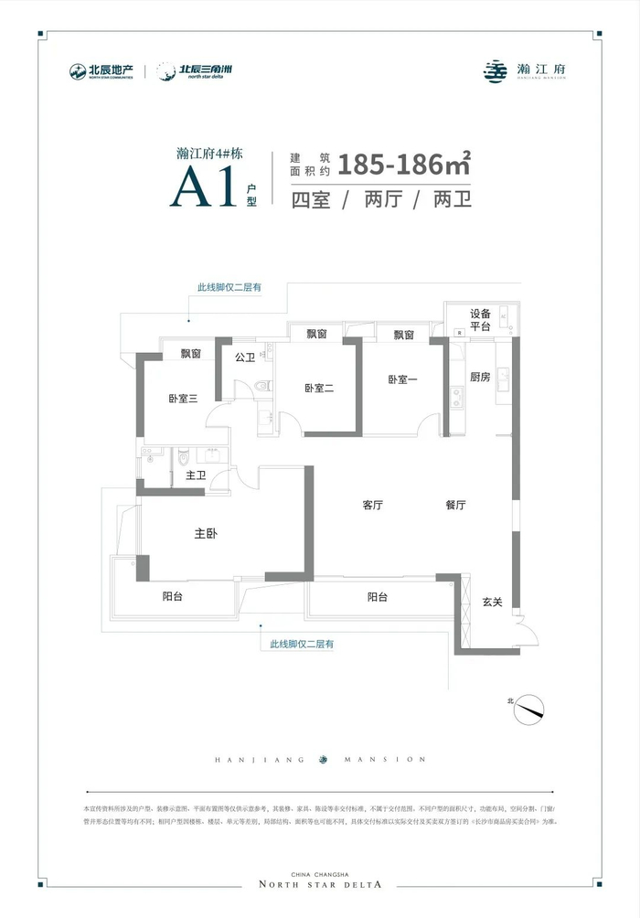 本资料为要约邀请,不作为要约或承诺,相关宣传内容不排除因政府相关规划、规定及出卖人分期规划、未能控制而发生变化;买卖双方的权利义务以双方签订的《长沙市商品房买卖合同》及其补充协议、附件等书面文件为准;开发公司为:“长沙北辰房地产开发有限公司(北辰实业控股)”。项目推广名为:“瀚江府”。商品房预售证:“长住建售许字(2021)第0507号”。本项目代理公司为:中原(湖南)房地产代理有限公司,湖南鼎兴置业顾问有限公司。本资料发布日期为2021年9月,敬请留意最新资料。