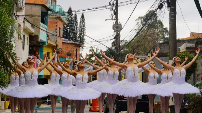 这一次,他们穿上了传统的白色芭蕾纱裙,以贫民社区五彩斑斓的建筑为背景,将火热的桑巴舞步融入优雅的街头芭蕾,展现了巴西独特的多元文化之美。