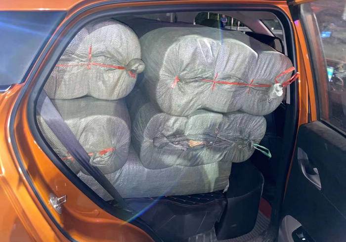 随后,民警发现其车上后排装着的货物被包得严严实实。凭着多年工作的职业敏感性,民警怀疑车上可能装有涉嫌违法违禁物品,便要求驾驶人靠边停车接受进一步检查。