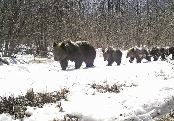 棕熊一家列队前行