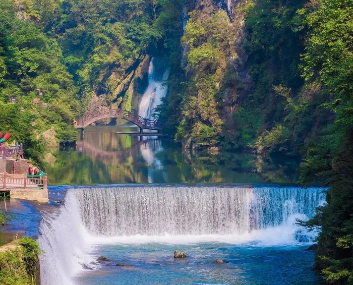 洒金谷因“古、幽、奇、险”而闻名。古桥、古驿道、古摩崖石刻散布景区,谷内绝壁高峻,山谷幽深,山水斗奇,碧波荡漾,奇峰飞瀑,天生一幅秀美的山水画。