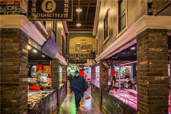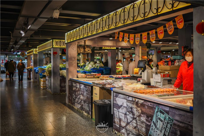 老卢湾的宝藏菜场“泰康路菜市场”升级后变得洋气了不少,在寸土寸金的田子坊地块,占地1000㎡,还融入了“石库门”的风格。