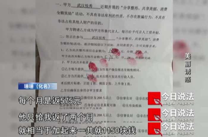 最初,被害人和机构签署的推广协议中写明,只要正常推广照片,介绍有整形需求的潜在客户,就能拿到返款。然而那些被骗的消费者没想到,自己贷款付的钱,机构根本不会全额返还。