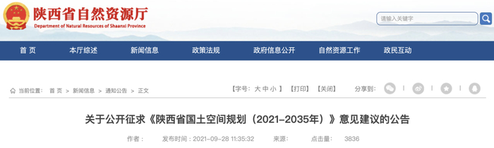 公告 |《陕西省国土空间规划(2021-2035年)》公开征求意见建议