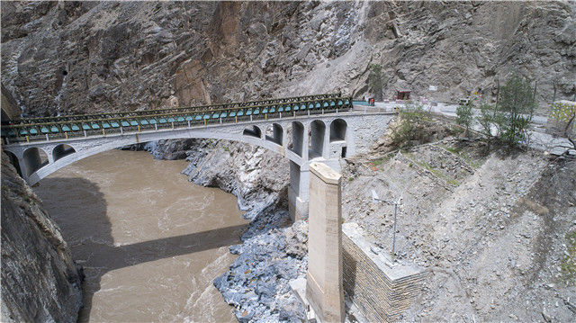 怒江大桥旁保留的一座特殊桥墩。众口相传,当年修筑怒江桥时,一位战士因连续作业身体疲劳,不慎掉进10多米高、正在灌注水泥的桥墩里英勇牺牲。如今,很多汽车兵在经过这里都会鸣笛献烟致敬。新华社记者 熊琦 摄