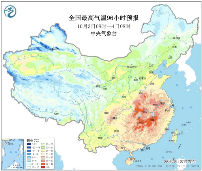 从10月3日开始,随着副热带高压的再度增强,我国江南、华南、江汉、江淮及四川盆地东部将出现一轮高温天气,上述大部分地区最高气温可达34℃至37℃,局部可达39℃左右。