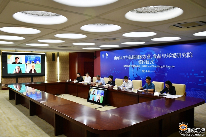 原标题:山东大学与法国国家农业、食品与环境研究院举行“云”签约仪式