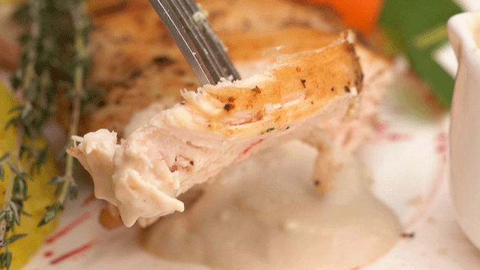 这个黄金饭超有仪式感~半圈的米饭,差点看不出已切的鸡胸肉,还有萝卜绿叶等点缀,细节给满分!鸡胸肉蘸上特配酱汁,再来上一勺黄金饭,味蕾立马得到了满足~