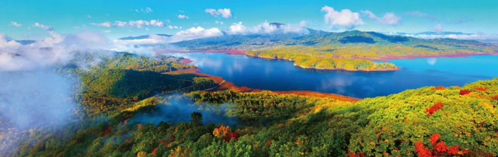 线路看点:黑龙江拥有中国最大的连片森林。由大兴安岭、小兴安岭、完达山、老爷岭、张广才岭等山区构成的全国最大型林区,组成了浩瀚的北国林海。入秋,高地起伏的山脉间不同的树种呈现斑斓色彩,是谓“五花山色”。其中以伊春的小兴安岭最为著名:白云流转,天空蔚蓝,火红的枫叶、金黄的白桦叶子、碧绿的松针……漫山遍野的缤纷色彩,层林尽染。