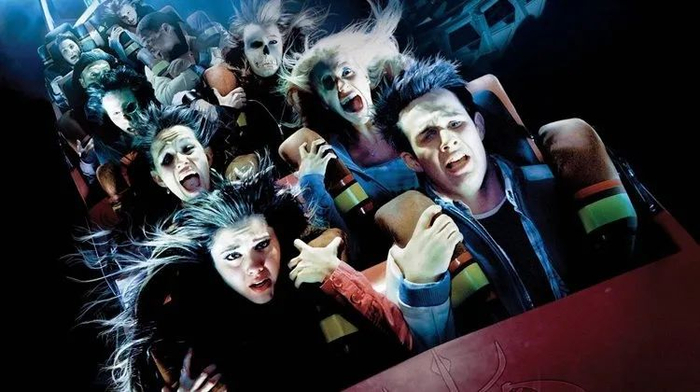 《死神来了3》中,女主角在坐上过山车系好安全带的那一刹那,看到了这个过山车将要出现事故的幻觉,于是哭喊着要下来。