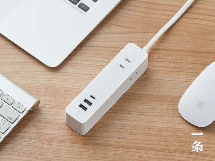 它可以说是我目前见到的体积最小、但能充设备最多的插线板。