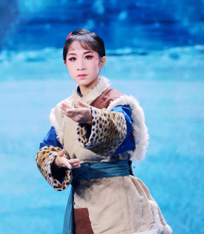 来自浙江的10岁女孩张琼尹,带来了越剧《荆钗记》。因歌学戏的她,功底扎实,刻画人物淋漓尽致。除了才艺歌曲之外,还化身小小红色讲解员,现场为大家讲解起红色文物。