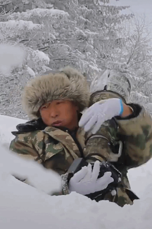野生动物大多都很灵敏,想要拍到野生动物自然真实的状态,就需要将自己伪装隐藏起来,不去打搅动物的生活。为了伪装,老万半截身子都埋进了雪坑了,差点冻得没有了知觉。