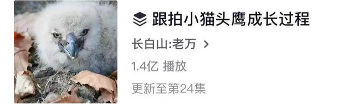 他曾花两年时间追踪拍摄猫头鹰一家的故事,整整24集,像一部电视连续剧,超过1.4亿次播放。
