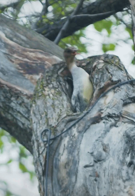 这是小时候的中华秋沙鸭,因为巢筑在树上,所以它们必须学会飞翔,才能下树去湖面捕食。