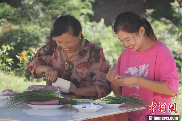 蓝天白云、涓涓溪流......在群山的映衬下,姚秀远和她的团队开始了一天的工作。两台摄像机、一张方桌、两个木凳,姚秀远和外婆(姥姥)准备着美食视频的制作。