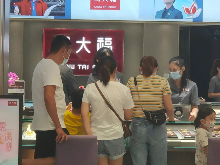据广百百货相关负责人介绍,不久前的中秋假期,广百股份组织“十里红妆金碧辉煌”珠宝节活动,珠宝类销售较疫情前的2019年中秋假期有三成增幅,其中周大福、六福、周生生、金至尊等头部知名珠宝品牌增长强势。