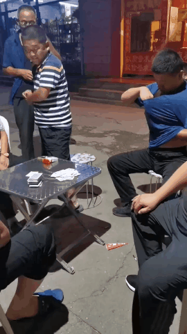 他们从领口看牌,从下面出牌,在衣服里回手掏出的这些售价2元的廉价扑克,反手就成为了扔向对手的二雷子。