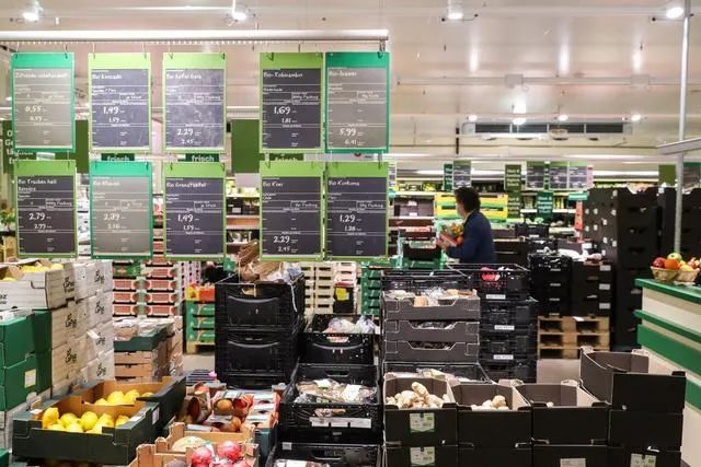 10月1日,顾客在德国柏林的一家超市购物。图片来源:新华社