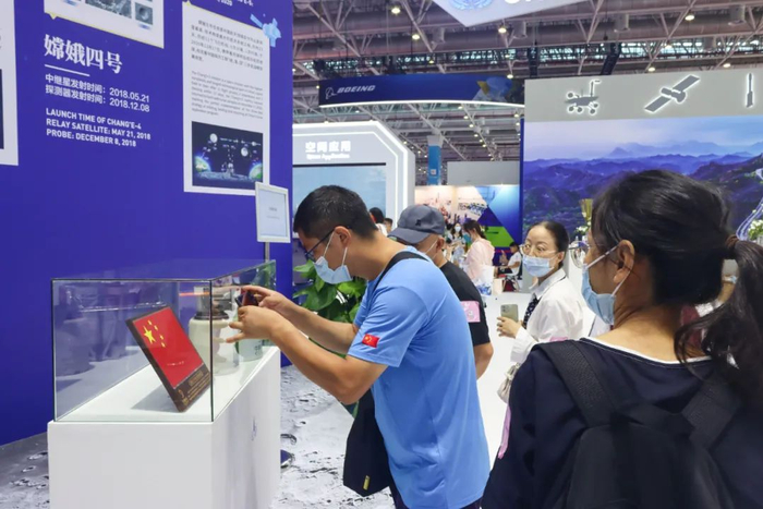 尽管展出的月壤样本不多,但意义却非常重大——因为这块由“嫦娥五号”收集带回来的近50年来唯一月球样本,是首次在航展上向公众公开展示。