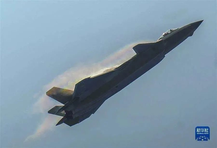 歼-20隐形战斗机在2021珠海航展上进行空中表演。/新华社记者刘大伟
