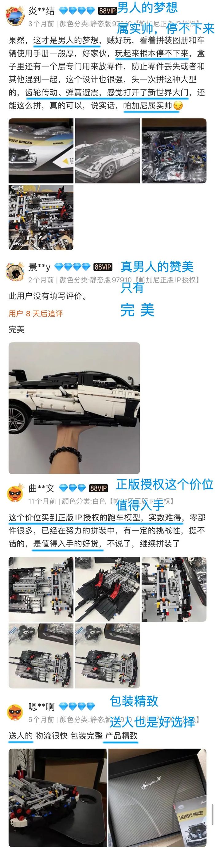 即使是积木车模,但它也是国内唯一帕加尼工厂正版授权的积木,意义非凡~