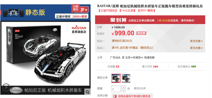 这台超级跑车全球限量20台,早已售罄,所以能买到这台积木模型也算是另一种弥补吧。