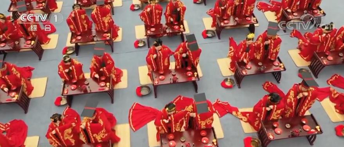 在四川广元剑门关景区,50对青年男女他们身着汉服,行四拜之礼、餐同牢、合卺酒、共结发、授婚书,依照传统汉风婚礼流程,在剑门关景区完成了一场极具传统特色的集体婚礼。