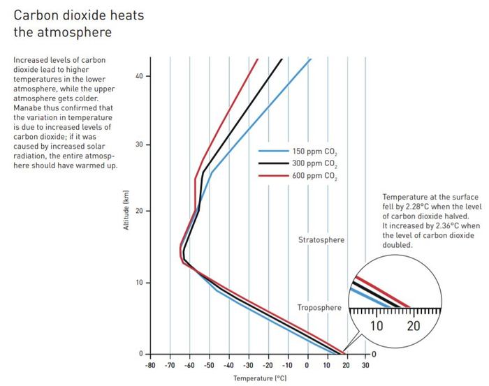 Source: Manabe and Wetherald (1967) Thermal equilibrium of the atmosphere with a given distribution of relative humidity, Journal of the atmospheric sciences, Vol。 24, Nr 3, May。