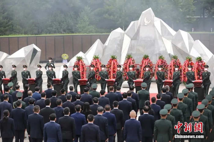 9月3日,第八批在韩中国人民志愿军烈士遗骸安葬仪式在沈阳抗美援朝烈士陵园举行,109名为国战斗牺牲在异国他乡的志愿军英烈70多年后在祖国的大地上安息。中新社记者 王景巍 摄