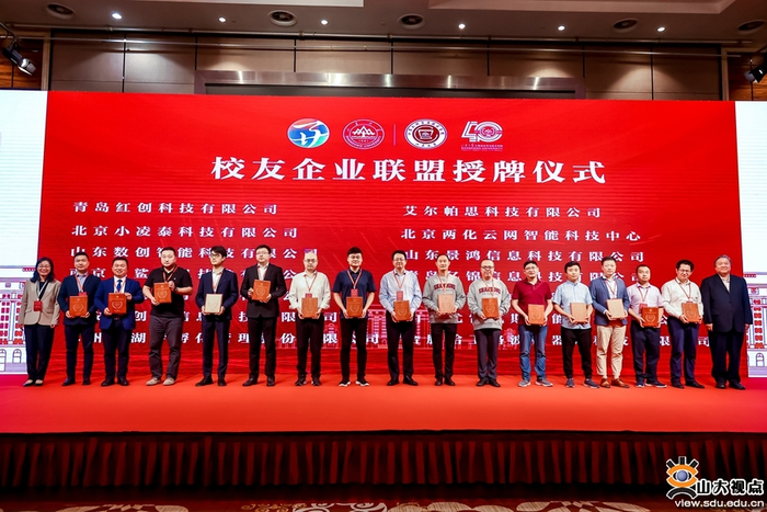 庆祝大会上举行了校友企业联盟授牌仪式。青岛校区副校长韩明涛和计算机学院院长成秀珍共同为参与联盟的校友企业代表授牌。校友企业联盟的成立,将不断完善以校友企业家和校友企业为主体的紧密型合作互助平台,帮助扶持学院创业校友群体的可持续发展成长,达成校友企业资源共享、合作共赢的发展目标。