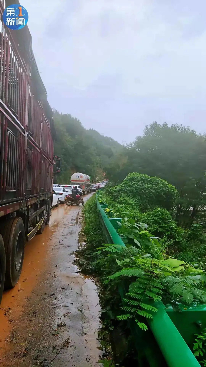 10月5日早上8点左右,因连日暴雨,京昆高速四川往西安方向1390公里(勉县段元墩隧道附近)发生大面积滑坡,导致道路单幅中断。