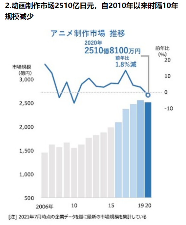 近日,日本调查企业帝国数据库公司(Teikoku Databank)发布的一项调查显示,日本动漫产业2020年销售额总计2511亿日元(约合148亿元人民币),相比2019年2557亿日元的销售额减少了1.8%。