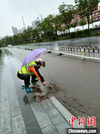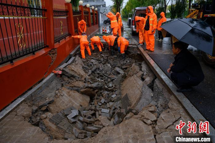 山西太原:持续降雨致路面塌坑 500余名“数字城管”冒雨巡查