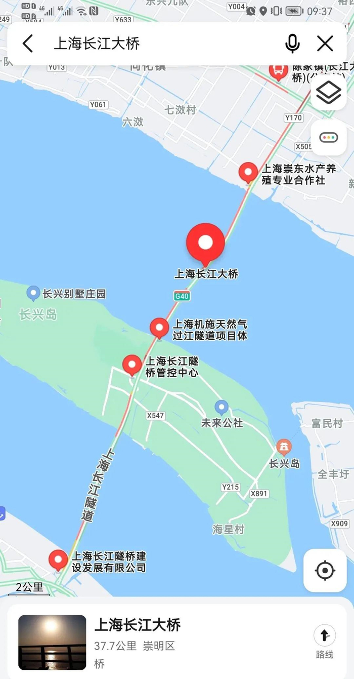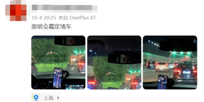 崇明往上海市区方向出现长时间拥堵,