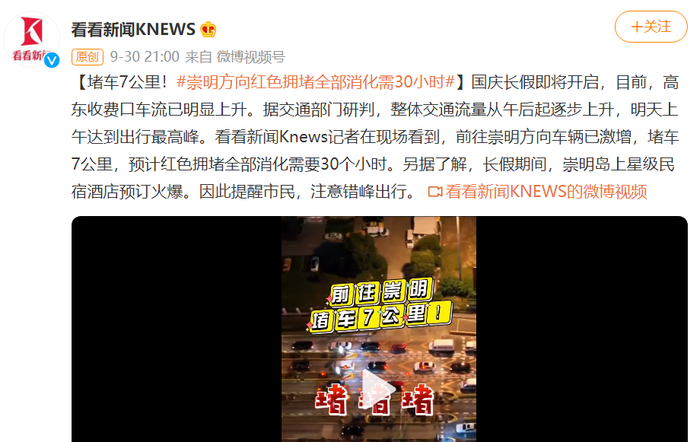 返程高峰来了!G40沪陕高速已排队13公里,上海长江隧桥段一度堵成“猪肝红”