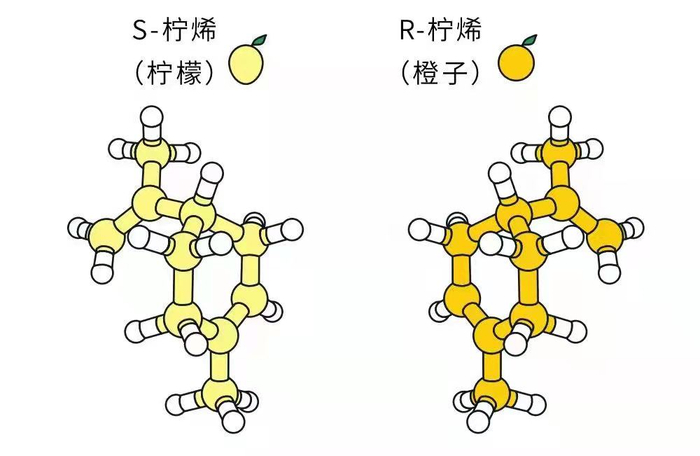 一种版本的柠烯分子具有柠檬气味,而它的镜像版本闻起来则像橙子。