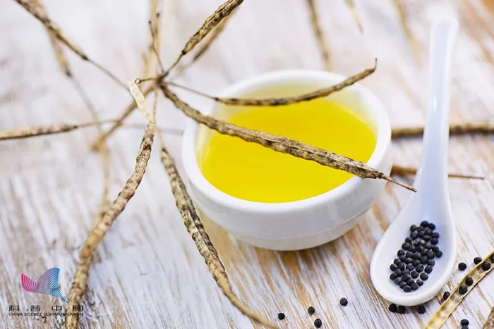 菜籽油,由油菜籽压榨而成,呈深黄色,具有较辣的气味,且粘度高,不饱和脂肪酸含量一般(油酸15.98%,亚油酸11.88%,亚麻酸8.23%),富含维生素E、胡萝卜素、磷脂等,具有一定软化血管、延缓衰老的作用,但菜籽油中介酸(46.97%)和介子苷含量较多,导致其营养价值不如花生油、大豆油、玉米油等。