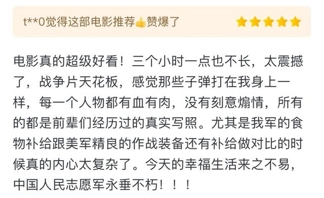 更别提 冰雕连 那场戏,志愿军战士的伟大,言语无法形容。不过似乎拍得还不够多,感觉徐克还没怎么发挥就结束了?也许后面还在憋大招吧,大家尽情期待。