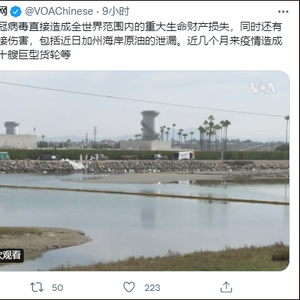 10月6日,“美国之音”官方推特账号发文宣称,加州海岸的原油泄漏事故,是“源自中国”的新冠病毒“造成”的“间接伤害”。