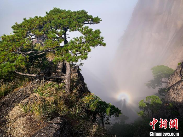 10月7日,安徽黄山云海中现“佛光”景观。 黄辉 摄