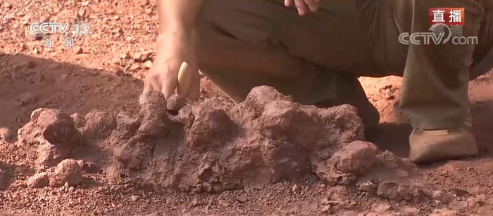 先来关注2号科考现场。在昨天(10月4日)的工作中,恐龙化石的尾椎部分已经逐渐显露出来,我们也通过专家的介绍,了解了恐龙尾巴的作用。今天现场工作进入了“啃硬骨头”阶段,会有什么样有趣的发现呢,马上来连线总台央视记者赵曙光。