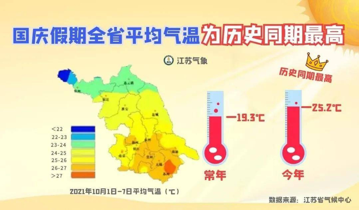 国庆假期江苏平均气温、极端最高气温双创历史新高