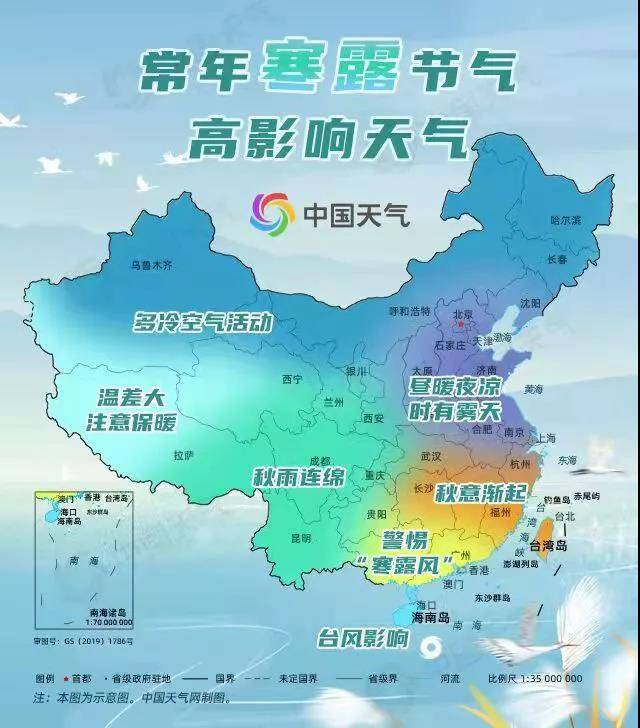 “寒露”是秋季的第五个节气,也意味着气温进一步降低,露已寒凉,霜要来了。 常年寒露节气期间,北方冷空气势力渐增,大部地区秋意渐浓,偏北地区或高海拔地区已经感受到寒意甚至已经入冬。而江南刚刚入秋,华南的秋天临近。而今年截至10月7日,由于副热带高压的异常偏强,黄淮地区南部及其以南大部仍是气象意义上的夏天,入秋进程要比常年偏慢不少。