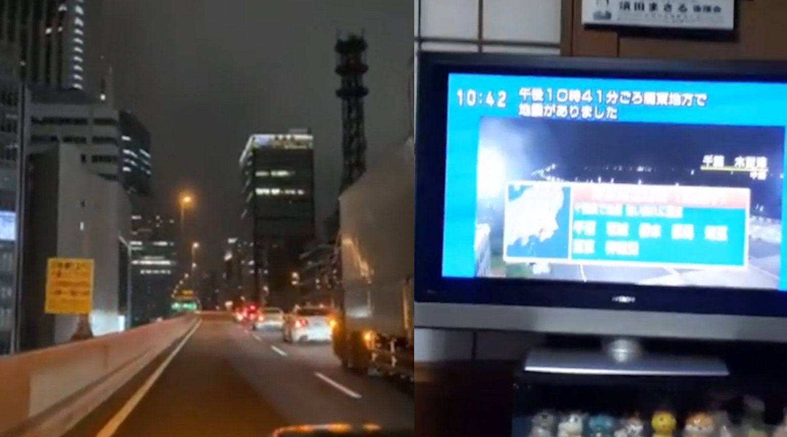 日本东京附近发生里氏6.1级地震 高架上路灯摇晃明显 车辆全部停下