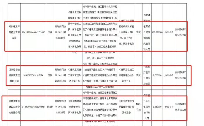 原标题:郑州裕华城书山苑项目违规 三公司两负责人被罚数百万