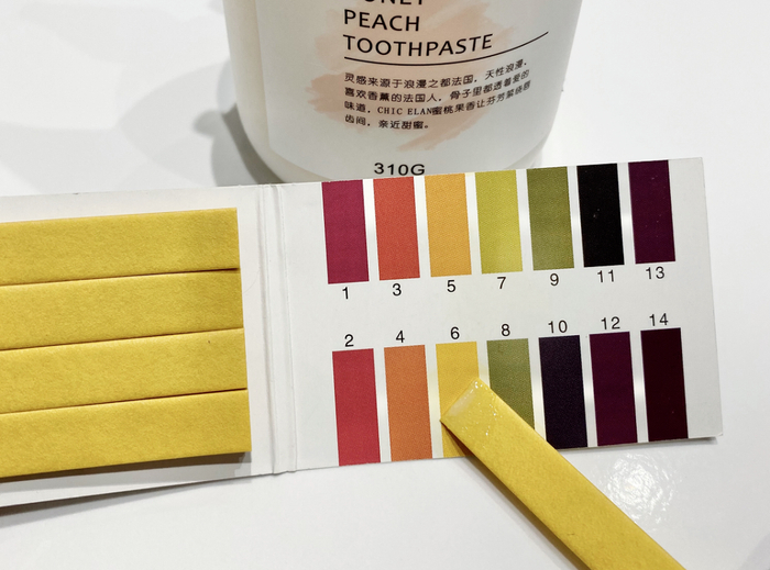 牙膏PH值在6-7之间,跟口腔PH值一致,刷牙时,通过平衡口腔酸碱度,缓解口腔异味。