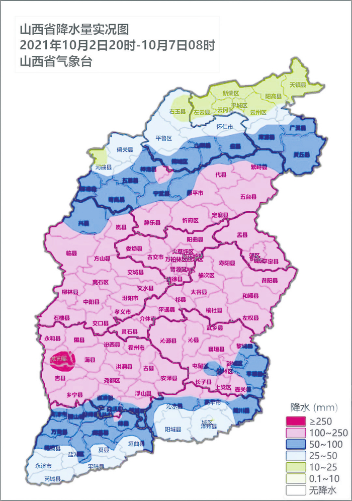 为何山西突然遭遇这样的极端天气?山西省气象台首席预报员王洪霞介绍说,近期山西降雨属于一次异常的极端性强降水过程。据统计,山西省降水主要出现在每年的6月-9月,10月份全省月平均降水量仅为31.1毫米。本次降水过程全省平均降水量达119.5毫米,是10月常年月平均降水量的3倍以上,多个站点数据破建站以来的同期历史极值。王洪霞表示,“此次天气过程具有累计雨量大、持续时间长、极端性突出等特点,过程前期降水伴有雷电和强对流天气、后期气温剧烈下降并持续走低,造成影响大、范围广。”