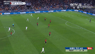 上半场比赛,双方均没有创造出破门的机会,45分钟过后比分仍然是0:0。下半场,法国队率先发起进攻,姆巴佩和本泽马连续传球,特奥小禁区前推射打中横梁后弹地而出。不过率先破门的却是西班牙队,第64分钟,布斯克茨直传,奥雅萨巴尔突破至小禁区前斜射入右下角。